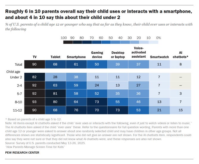 At least some use of a smart phone is happening among a majority of 2-4 year olds.