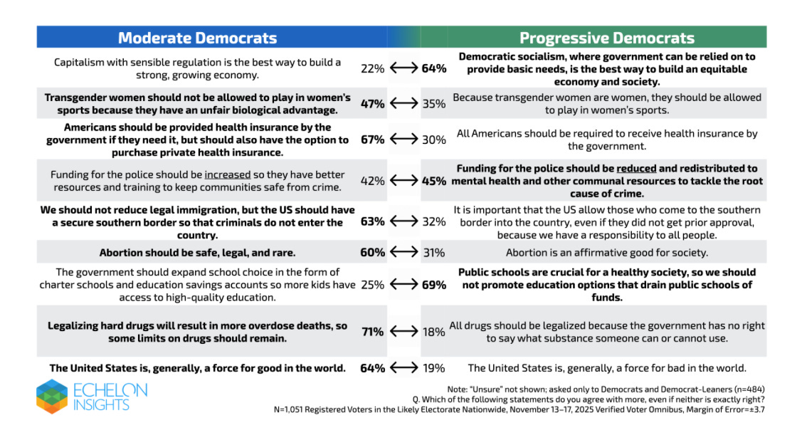 We asked self-identified Democrats about nine pressing issues in our recent omnibus survey monthâs omnibus survey. While they sided with the moderate view on six of those issues, one view stands out: a 3-to-1 preference for âdemocratic socialism, where the government can be relied on to provide basic needs,â over âcapitalism with sensible regulation.â