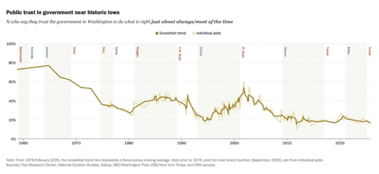 Karlyn Bowman argues that instead of the government generally or elected officials specifically, pollsters should instead look at how the American public feels about specific government functions and agencies to gauge how best to repair a public trust that has been eroding since the 1960s.