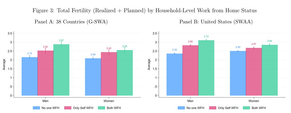 Increasing fertility is a notoriously hard nut to crack — even with direct cash payments to parents. So this new finding that both parents working from home increases fertility by a total of 0.32 children per woman is quite the eyebrow-raiser.