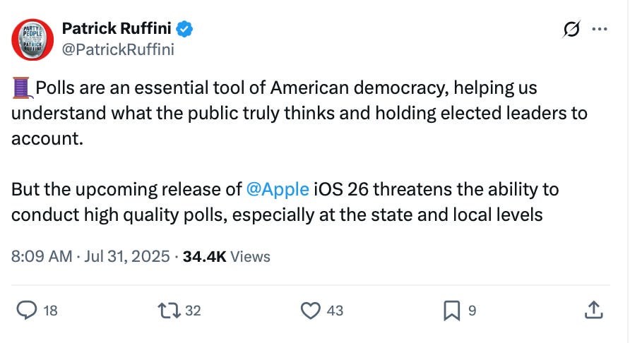 On X, I have a thread on how the release of iOS 26 threatens high-quality polling: