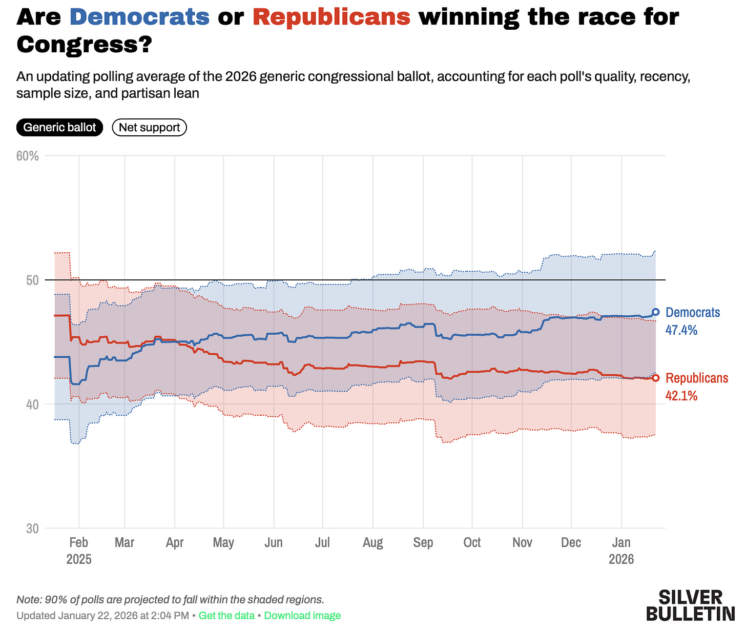 Silver Bulletin is out with its midterm polling averages, which now show Democrats beating Republicans by 5.3%.