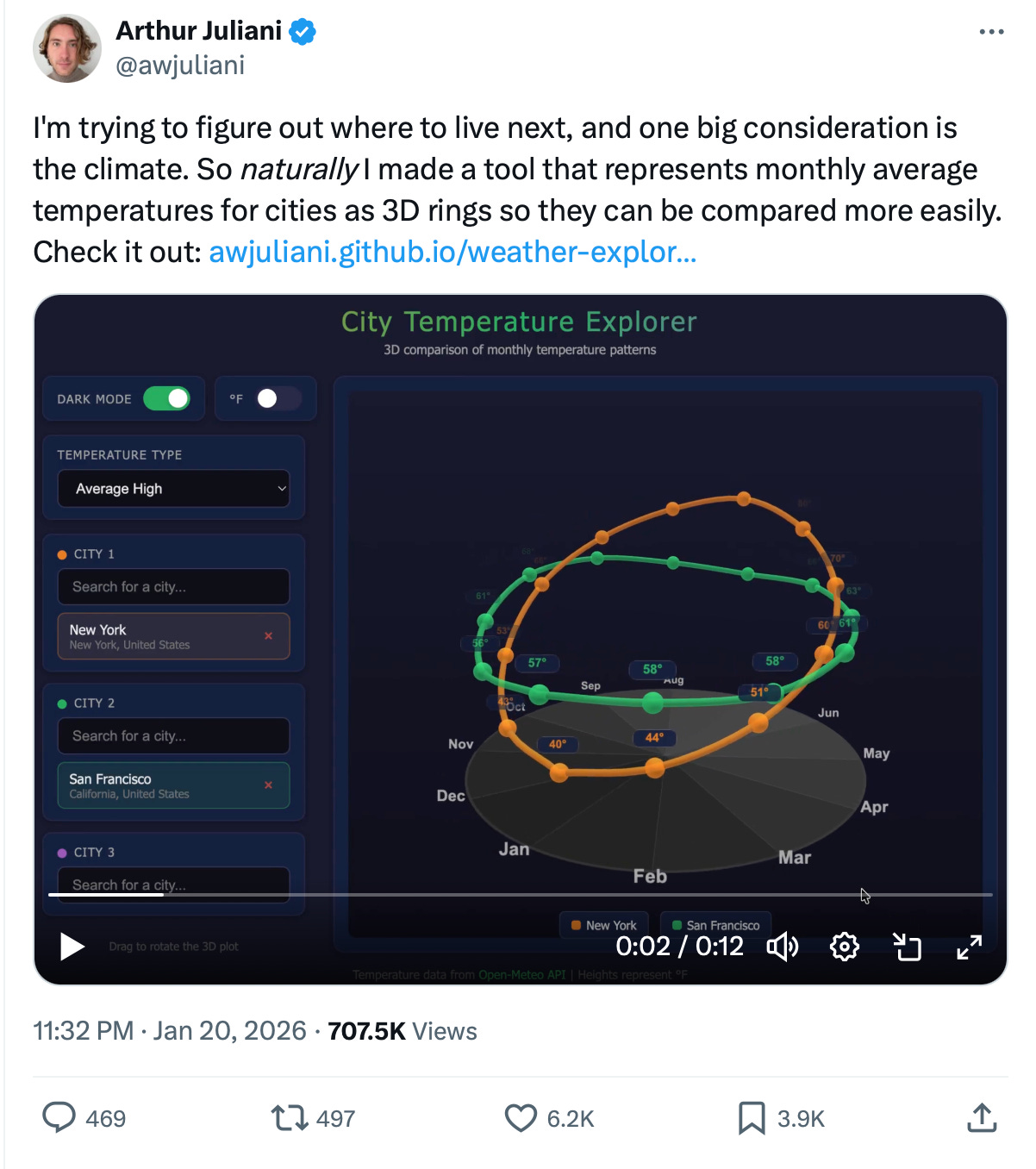 But it does enable you to build cool stuff fast, like visualizing year-round weather in different cities as 3D rings.