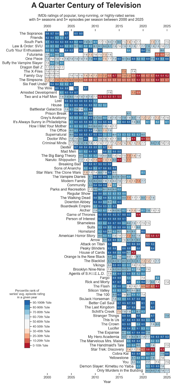 It’s just science: the longer a TV show goes on, the more its IMDb ratings drop (looking at you Game of Thrones and House of Cards). But some like Breaking Bad, BoJack Horseman, and Better Call Saul continued to climb throughout their run.