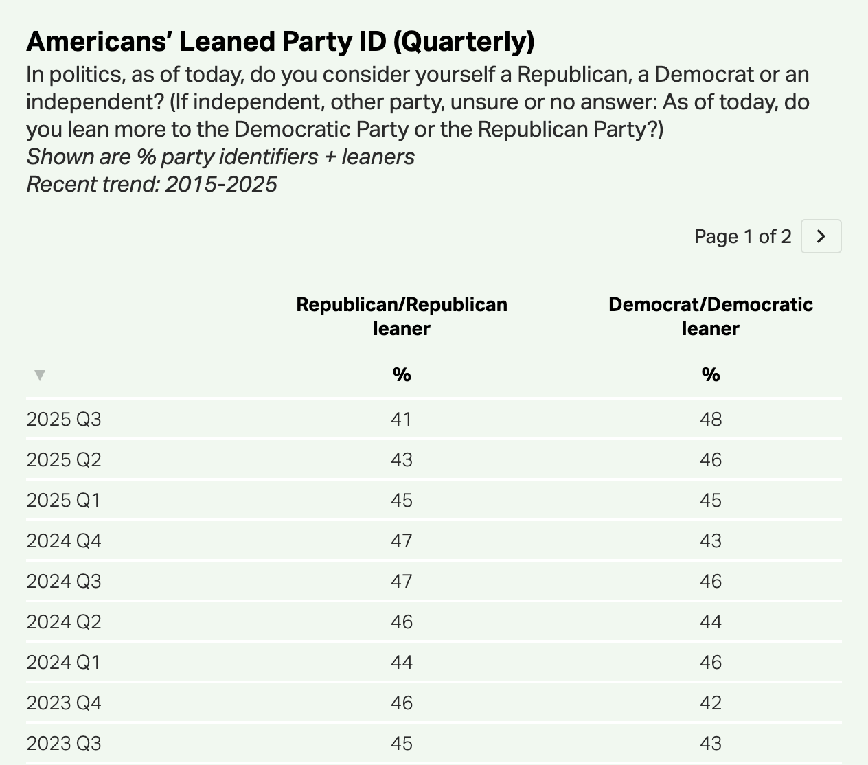 Party ID isn’t fixed. It moves. But a 13-point swing in net party ID from the 4th quarter of 2024 is unlikely, even if it might be directionally right.