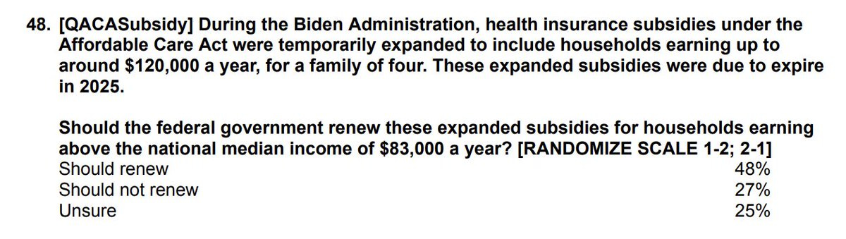 And you can argue that Democrats have a strong hand on the question driving the shutdown — even with framing talking about how the ACA subsidies are going to higher-income people and were due to expire anyway.