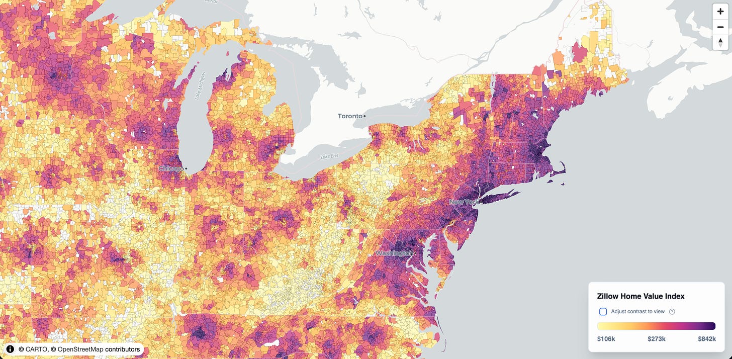 An open source application on GitHub depicts the stark differences in the housing market at the ZIP code level.